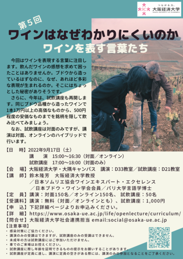 なお、試飲講座は対面のみですが、講演は対面、オンラインのハイブリッドで行います。