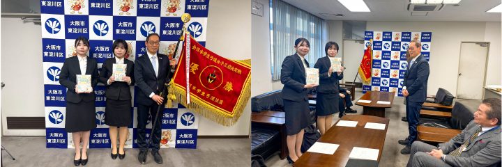 2025年12月18日(水)、大阪経済大学弓道部(女子)が東淀川区役所を訪問し、武富区長に全日本学生弓道王座決定戦での優勝を報告しました。