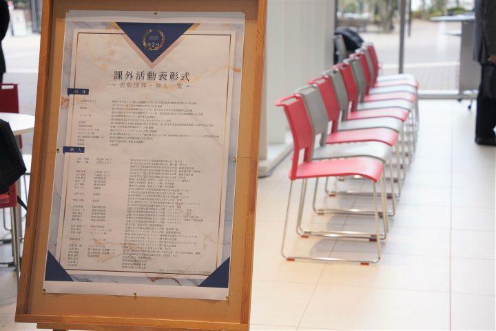 その後、明石学長補佐から各団体・学生への表彰状授与、表彰学生による代表挨拶が行われました。