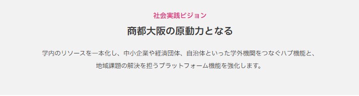 ビジョンの「社会実践」という言葉には、大学の知の還元を行う社会貢献に加えて、社会に役に立つことを一緒になって行っていこうという連携の意味が込められています。その方向性の一つが、日本有数の研究機関、中小企業・経営研究所(以下、中小研)のリソースを生かした中小企業支援のための実践的な取り組みです。他の経済団体や民間機関が行うものとは違う、大学らしい支援、大阪経済大学らしい支援を目標に活動を開始しました。まだ、それがどのようなものか確立しておりませんが、大きな方向性としては、学外機関と積極的に連携していくということです。本学だけで出来ない事は、他の機関や企業と連携するなどコラボレーションは大きな力を呼び起こす、まさに創発の源泉だと思っています。