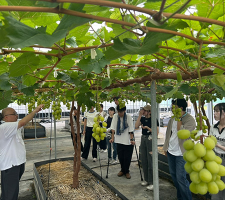 現地での学びをより深められるよう、本学での事前授業(全15回)と京都大学木津農場での事前研修が設けられています。農場へ足を運び、ブドウ樹をはじめとした果樹一般について、栽培から商品流通までの一連の流れを学ぶ総合的な内容です。