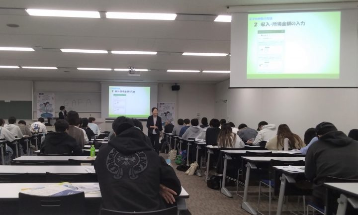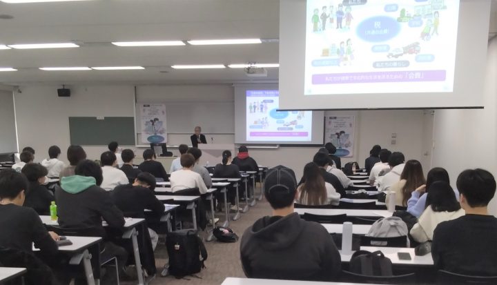 11月11日(火)、経営学部「租税法」の講義(担当:古賀敬作教授)に東淀川税務署職員の皆様をお迎えし、講演会を開催しました。