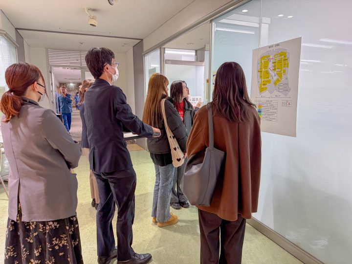 報告会の後、建設局の職員に庁舎内をご案内いただき、建設局内にある総務系部署および技術系部署について説明を受け、公園をはじめ、道路、下水、河川など、市民の暮らしを支える分野の業務内容が紹介されました。