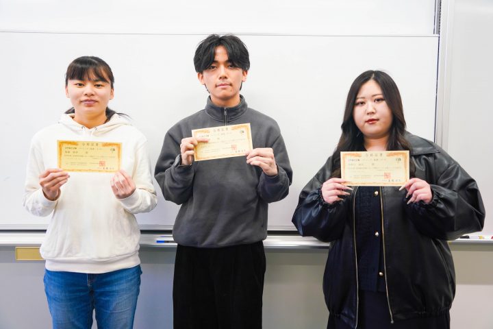 今回合格した学生たちは、「自分の学びの成果を確かめたかった」「就職活動を見据え、資格として形にしたかった」「法律は難しいと思っていたが、これなら挑戦できると感じた」と、それぞれの動機から受験を決意しました。問題集を中心に学習を進めながら、授業で学んだ法律の読み方や考え方が、そのまま試験対策につながったといいます。