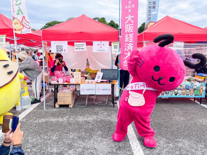 2025年10月18日(土)・19日(日)の2日間、滋賀県彦根市の夢京橋キャッスルロード一帯で「ご当地キャラ博2025 in 彦根」が開催されました。全国から約140体のご当地キャラクターが集まり、約8万8千人の来場者でにぎわいました。大阪経済大学からは本学のマスコットキャラクター「はてにゃん。」が参加し、来場者とふれあいながら会場を盛り上げました。