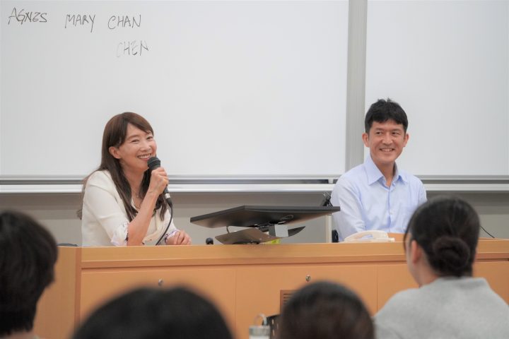 講演後には、山本俊一郎学長も交え、質疑応答の時間が設けられました。学生から寄せられた様々な声に、真摯に向き合い丁寧に回答するアグネス氏の姿が印象的でした。