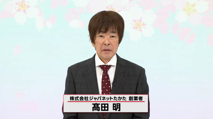 続いて上映された卒業生からのビデオメッセージでは、ジャパネットたかた創業者・髙田明氏が登壇し、次のように語りました。