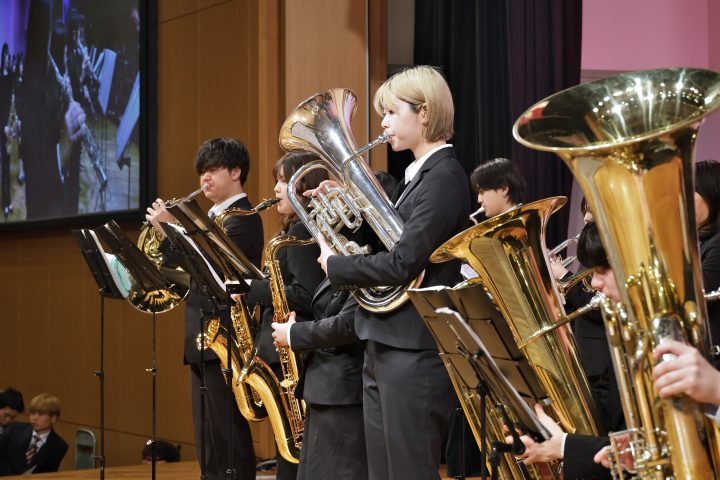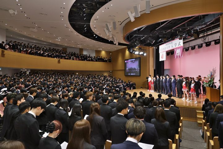 式典は吹奏楽総部による演奏で幕を開け、その後、チアリーダー部による華やかなパフォーマンスが披露されました。新入生の門出を祝う力強くも明るい演出に、会場は歓迎の空気に包まれました。