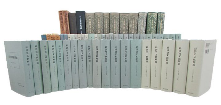 研究成果を世に問う図書の編纂・出版活動にも積極的に取り組みました。学術的研究論文を単行本として発行した「研究叢書」、経済史への興味を広げる一般向けの読み物として多数の論稿を集めた「史話叢書」、日本経済史の部門別叢書「日本経済史叢書」のほか、代表的な事業となったのが1940年に発行した『日本経済史辞典』です。前身の経済史研究会時代に計画され、本庄、黒正、菅野三先生が中心となって、日本経済史、国史、地方史誌に関する様々な文献、社会経済学、国史関係の辞典から約1万の収載項目を選んだところで、日本経済史研究所開設に伴ってその事業として引き継がれました。その後、収載項目の再検討を続けて項目を増やし、各900ページ以上の上下巻と索引巻の三巻本として発行されました。